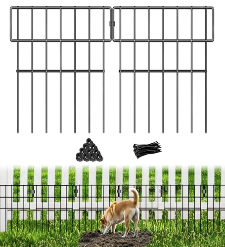 Fence Panel Size:Each metal garden fence panel high is 17 inches, 13 inches wide, with 1.5 inches of fence post clearance,10 panels in total, for a total length of 10.83 ft. garden fence can protect your yard and effectively prevent small animals from digging under or through the fence