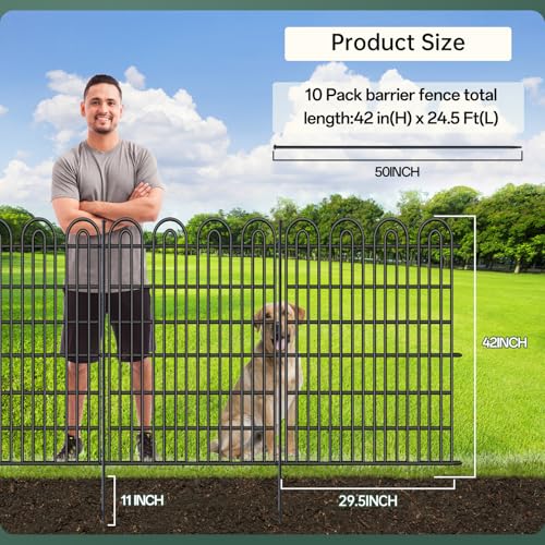 LARGE SIZE FENCES PANELS - 1 panel fence size: 42in H x 29.5in W, the total size of 10 panels: 42in H x 24.5ft W. You can install the fence in different shapes or purchase additional fences according to your needs