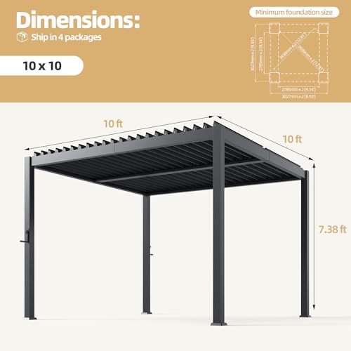 ?Simplified Assembly with Upgraded Structural Design?The upgraded assembly structure is designed for quicker and easier installation with fewer complicated parts and steps. No welding or special tools are required, making setup simpler and faster than traditional louvered pergolas so you can enjoy your outdoor space sooner