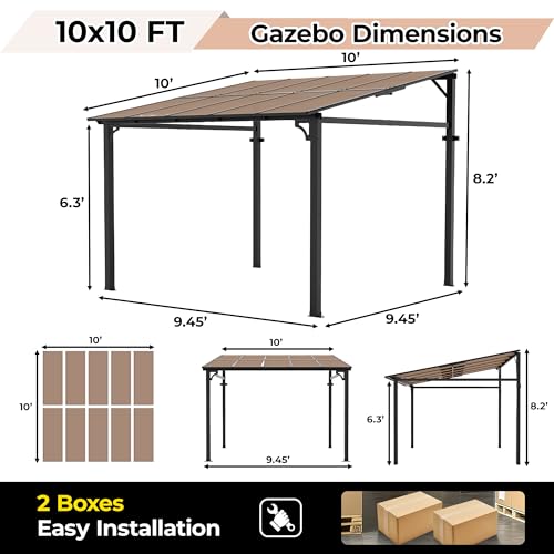 Versatile Outdoor Use: The metal lean to gazebo comes into TWO packages, which might not deliver at the same time. Also, please assemble the gazebo by following the instruction and let us know if there’s any problem. Perfect for patios, decks, porches, and backyards, this wall mounted gazebo serves as an ideal space for outdoor dining, relaxation, or entertainment