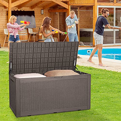 ?Extra Bench Seating?The deck storage box provides 2 comfortable seats (up to 450 lbs) that you can set up as a outdoor storage bench where you can sit and chat with friends, or as a patio table or stool next to the sofa, books and food.