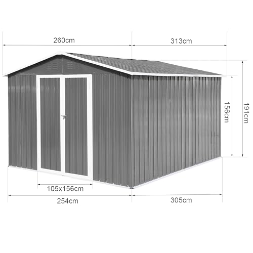 ?Durable Steel Construction? Built with heavy-duty galvanized steel panels, this 10ft x 8ft metal shed resists rust, corrosion, and harsh weather. The apex roof design enhances durability while allowing rainwater runoff.