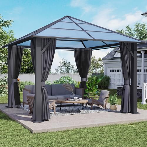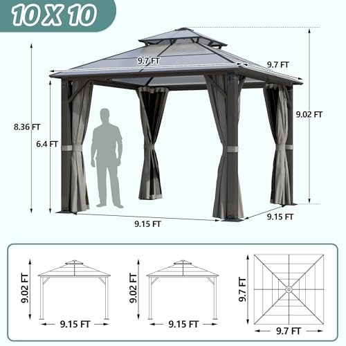 ?LONG LASTING DURABILITY?: The sturdy aluminum frame of this hardtop gazebo is coated with a premium powder coat finish that won't scratch, flake, corrode or rust. Comes with a pre-drilled base designed for sturdy installation and is supplied with expansion screws for concrete floors to help maintain stability for years to come.