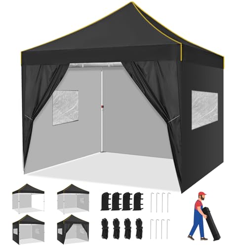 10x10 Pop Up Canopy Tent with 4 Removable Sidewalls: This pop up canopy 10x10 comes with 4 detachable sidewalls, including 2 side walls with clear windows and 2 featuring a zippered door. These sidewalls can be easily installed or removed according to different occasions. Since Large outdoor canopies weighing 39.6 lbs, we offer you a solid and sturdy roller bag. It has 4 large wheels for standing feet and a reinforced handle for easy movement and transportation