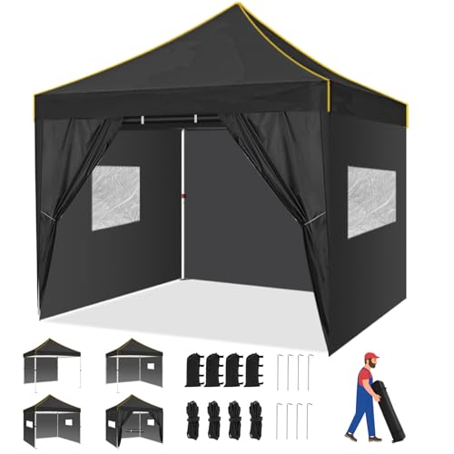 Easy Set Up Canopy: 2-4 people can easily set up and take down pop up canopy with sidewalls in minutes without tools. Each leg has quick-release buttons for easy height adjustments of the 10x10 pop up canopy. The pop up canopy tent are perfect for parties, vendors,envents,campings, yards, beaches, trade shows, sporting events, perfect freestanding shelter for outdoor events