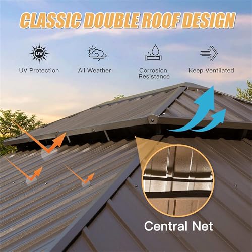 Perfect Size and Multiple Usage- The outdoor gazebo measures13.87'L x 9.77'W x 9.65'H, with a 6.75' eave height, and post width of 5.51". This hardtop gazebo covers an area of 12.95'L x 8.85'W, providing 114.6 sq. ft. of shade, perfect for backyard gatherings, BBQ parties, weddings, and lawn and patio events.
