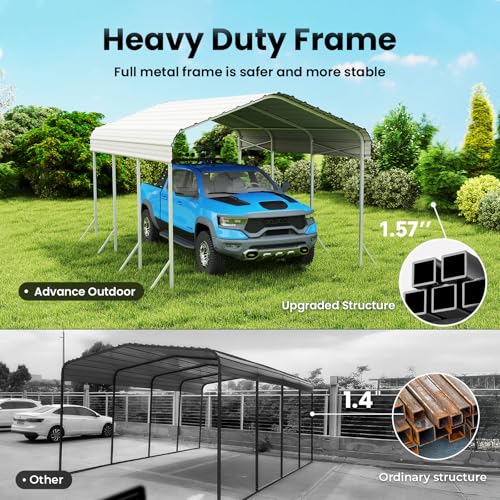 All-Weather Protection: Sturdy 2‘’ x 2‘’ frame and 27-gauge sheet metal roof provide reliable protection for your vehicle and outdoor equipment from rain, snow, and sun all year round