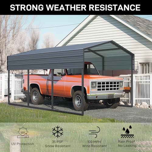Heavy Duty Carport: The 10'x15' outdoor heavy duty carport canopy garage car shelter with enough room for you to place your vehicles, trucks and boats. The metal carport not only can be used as a car carport canopy, but also can be used as an activity shelter for outdoor events like parties, weddings and commercial fairs