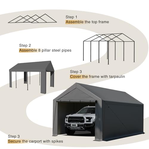 Easy Assembly?Our portable garage is designed with convenience in mind and can be easily assembled without any complicated tools or professional assistance. The instructions are concise and clear, allowing you to get your carport up and running in no time