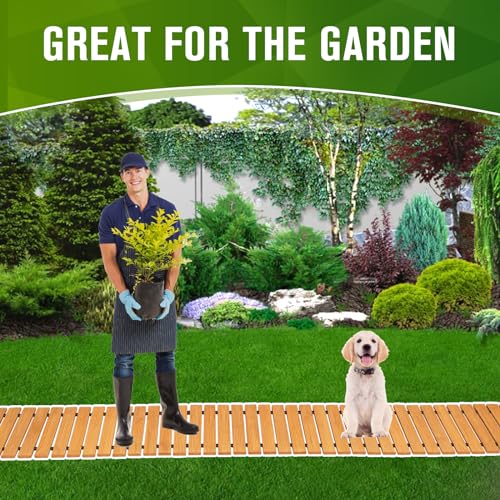 ?Garden Pathway Size? With a universal size of 12 feet (L) x 17 inches (W), this garden pathway is extremely flexible and suitable for flat and uneven floors. The board is 0.62 inches thick, and the surface is designed with non-slip lines, which not only effectively isolates the feet and shoes from the soil, water, sand and gravel on the ground, but also provides excellent anti-slip effect when walking in rainy days. A safer and more comfortable option for your walking experience.