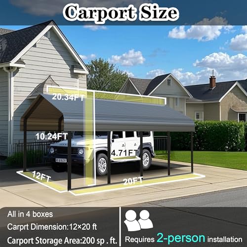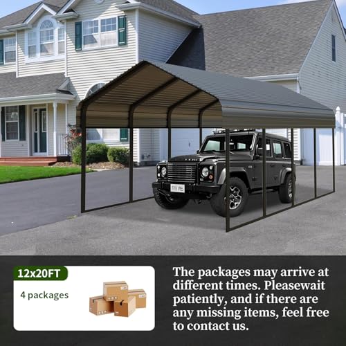 2. PRODUCT SIZE: Available in two spacious dimensions: 12 x 20 ft. Ideal for various vehicle types, including cars and boats. The stylish grey finish blends seamlessly with any outdoor setting.