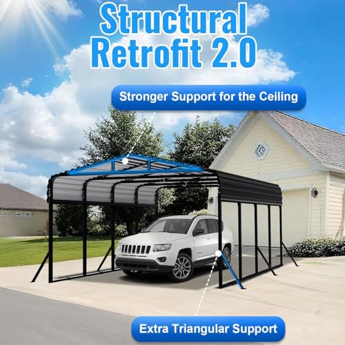 Spacious - This Metal Carport offers a spacious design, allowing you to park various types of vehicles with ease. Whether it's a car, boat, or even a tractor, this Carport has enough room to accommodate them all. With its generous size and durable structure, the Heavy Duty Carport Canopy is ideal for reliable space for their equipment or vehicles