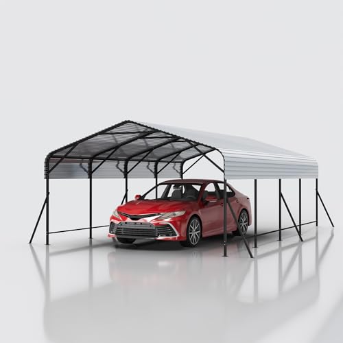 [DURABLE GALVANIZED STEEL ROOF] Engineered to Last: The heavy duty carport features a robust angled galvanized steel roof that is built to withstand rust, and severe weather. This heavy-duty design offers outstanding durability and long-term reliability, maintaining structural integrity in even the harshest outdoor conditions. Count on strong performance and protection through rain, wind, and sun.