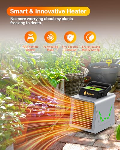 ?Best Greenhouse Heater?The 1500W greenhouse heater quickly heats up 150 square feet of space, creating the best conditions for greenhouse survival. Even in the cold winter, you don't have to worry about plants, vegetables, flowers, etc. freezing to death, they can all thrive. [Precisely adjustable temperature range is 40-113? (5-45?).]