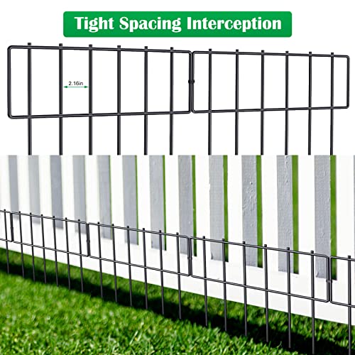 PERFECT SIZE: Each decorative garden fence is 13 inches long and 17 inches high, with a fence pole clearance of 2.16 inches, a total of 19 Pack of fences, with a total length of about 20.6ft. It can effectively prevent small animals from digging the fence to enter or leave the garden.