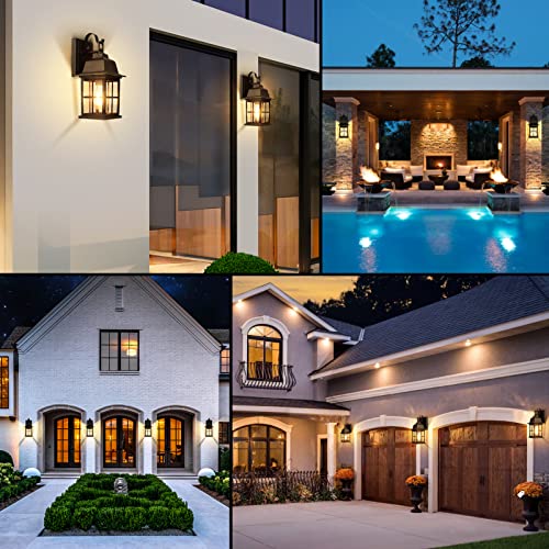 Wide-Application: These practical outdoor wall sconces are built in perfect size(12.2 inch in height, about 7.5 inch from fixture to wall and 6 inch in width), being suitable for placing on outside of house, garage, porch, front doorway, garden, entryway, driveway, courtyard, roadway, parking lots, sidewalk. Besides, they’re also available for commercial/residential usage as overnight security lights. Bring these wall lights and light up your way home