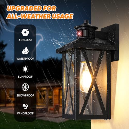 Energy Saving Advanced IC Light Sensors: Get ready to save energy and money on your electric bill with our dusk to dawn wall mount lights! The outdoor wall lights are equipped with advanced IC light sensors that automatically turn on at dusk and turn off at dawn. What's more, with the newly upgraded PIR motion technology, your space will be brightened as soon as motion is detected