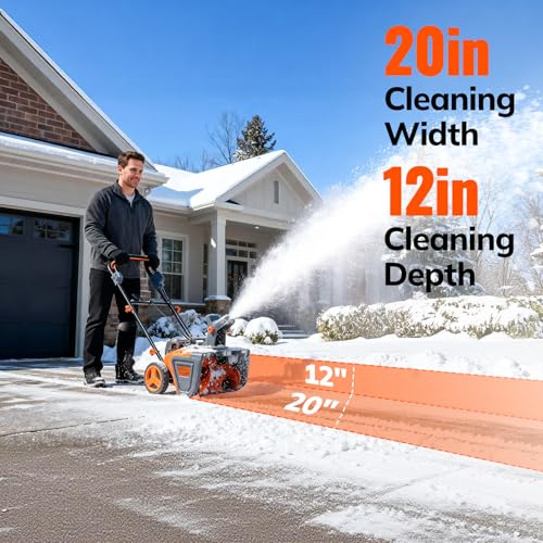 ?20" Clearing Width & 12" Depth for Efficiency?This electric snow blower is designed for Zoned Sweep Clean Everywhere. The 20-inch width and 12-inch depth allow you to clear sidewalks, driveways, and patios in one efficient pass. Save time and effort—even during heavy snowfalls
