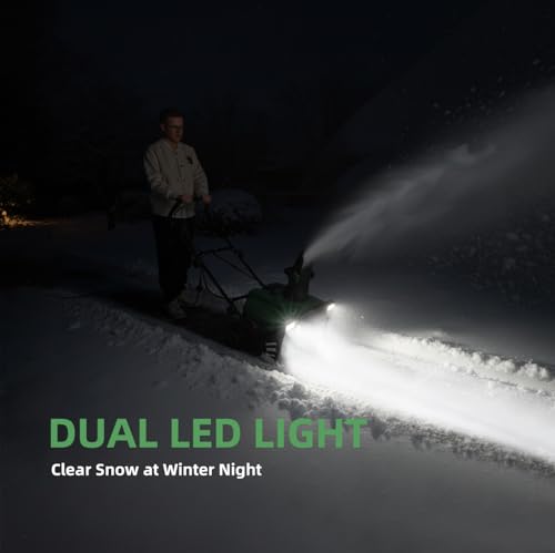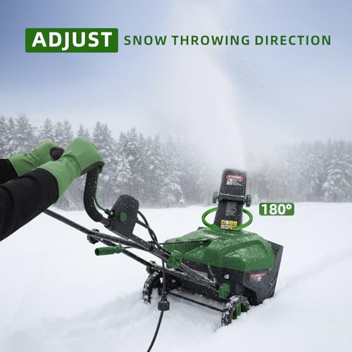 ?Ergonomic & Environmentally Friendly?Enjoy a comfortable clearing experience with the adjustable handle. As an electric snow blower, it operates quietly with zero emissions, both durable and lightweight.