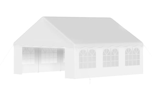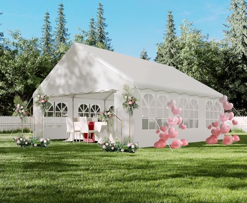 Excellent Ventilation: Our wedding tents Comes With removable sidewalls with PVC church windows and 2 zipper doors. The number of the sidewall can be installed freely as needed. Roll-up zipper door and detachable sidewalls for even better ventilation, providing cross ventilation and venting on hot days. Also provides warmth on cold days.