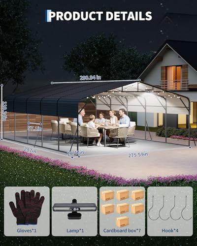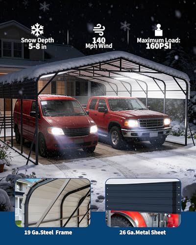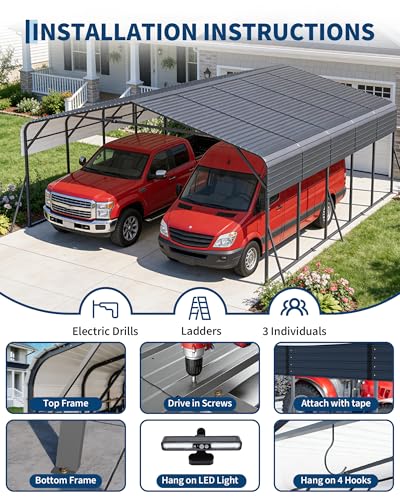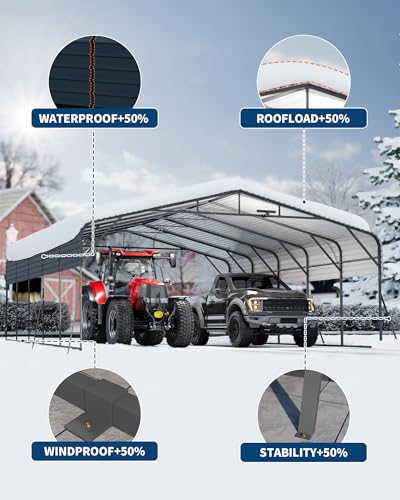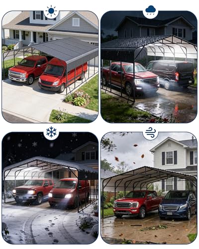 Durable heavy-duty build: Upgraded 20x25 ft metal carport with industrial-grade steel frame and galvanized steel roof, all components treated with a triple rust-resistant coating for long-lasting outdoor performance and protection for 2 cars, boats, or trucks.
