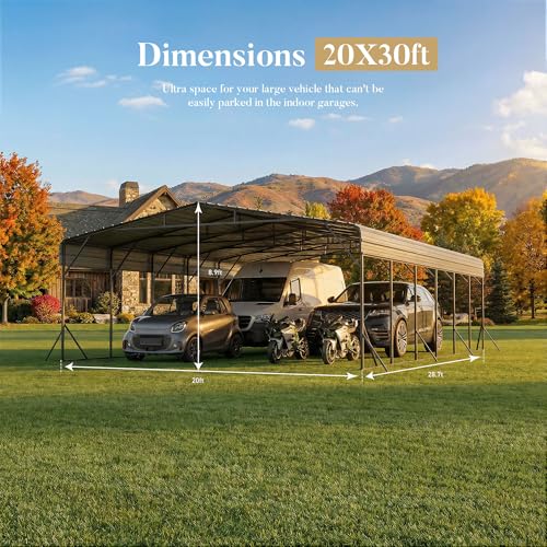 Heavy-Duty Durability & Rust Resistance?Built with high-quality metal frame and anti-corrosion coating, this 20x30 metal carport is waterproof, windproof, and UV-resistant—withstands years of outdoor use without aging or damage, ideal for long-term vehicle and equipment protection.