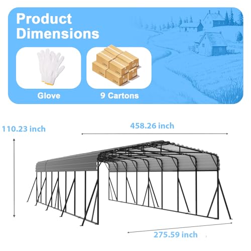 Quick & Easy Installation-All parts of this metal carport are pre-drilled and clearly labeled for hassle-free setup. With detailed instructions and included anti-cut gloves, three adults can complete the installation in a short time—no special tools required.