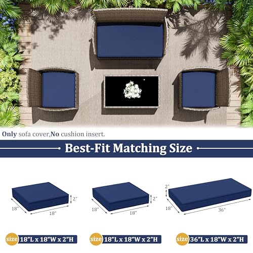 ? Important: Kindly take accurate measure your furniture Cushions . our Cushion Replacement Covers are sized, which are 36L x 18W x 2H & 18L x 18W x 2H inch, are a perfect match for your furniture Cushions. you can enjoy a seamless fit and optimal comfort for your 4 - seater patio or sofa.