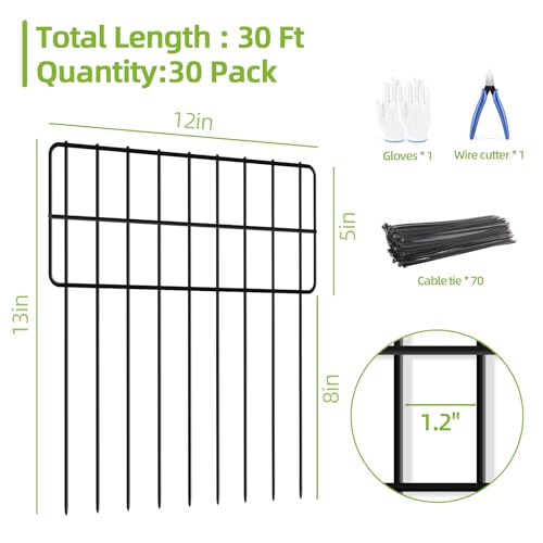 ?Size?The barrier fence extends the protection of your existing fence underground. Each small garden fence is 12 inches long and 13 inches high. There are 30 fences, the total length is about 30 feet.