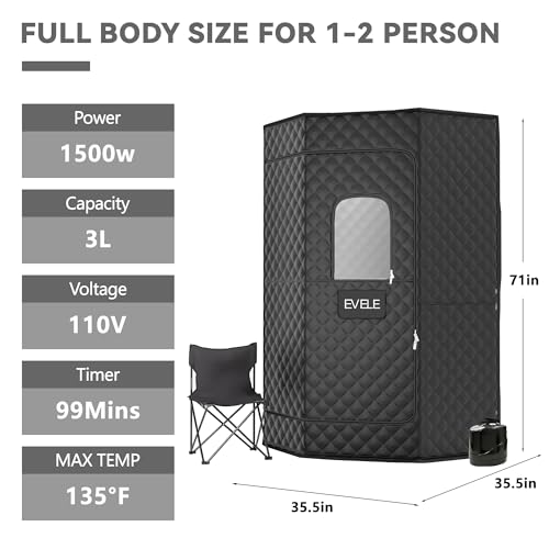 EXTRA SPACIOUS AND INDOOR OUTDOOR USE: We made this 35.5”L*35.5”W*71"H large sauna room, which is large enough for 1-2 people. It is also foldable and easy to store. You can use it in your living room, basement, bathroom, gym, and any other indoor or outdoor space.