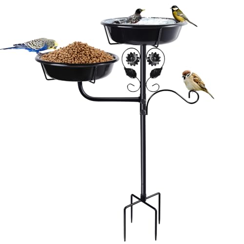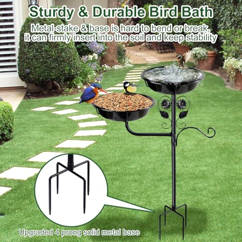 ?Suitable for All Weather Conditions?The sturdy 4-forked base can firmly fix the large bird bath to the ground, and it can stay upright even in the face of strong winds and rain. The surface of the birdbath is covered with black powder coating, so you don’t have to worry about rust when using it outdoors for a long time.