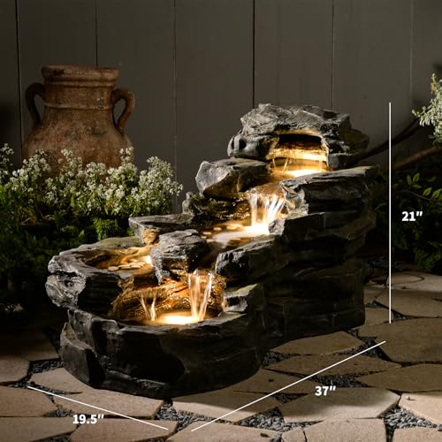 GARDEN WATERFALL FOUNTAIN: This running water fountain has built-in golden lighting to create a warm atmosphere. The waterfall fountain will turn into a magnificent indoor decoration at night.