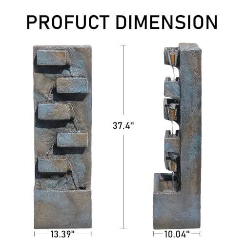 EXQUISITE APPEARANCE:Water fountain is composed of 5 small cubes and 1 large cube base, with the layered cube design adding visual appeal. The realistic stone texture and weathered concrete-coloured surface make it a focal point for the beauty of its surroundings, and the whole water fall fountains indoor exudes a modern aesthetic appeal.