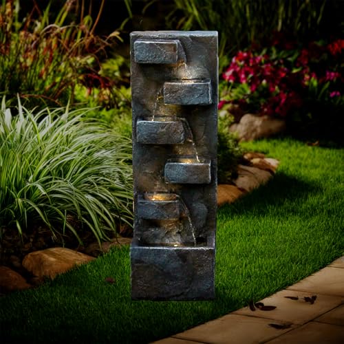 QUALITY MATERIAL:Outdoor water fountain is made of durable resin, which is windproof, rainproof, snowproof, sunproof and lightweight, so that the garden fountain can be used for a long time without fading, and it can also be easily moved indoors or outdoors according to your needs, to ensure that the fountain is aesthetically pleasing.
