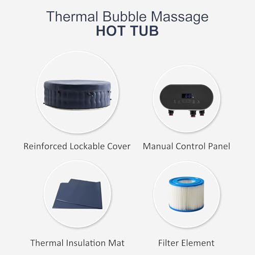 INTUITIVE CONTROL PANEL OPERATION: Easily adjust water temperature (up to 104°F), activate massage modes, set energy-saving timers, and manage filtration via the waterproof control panel. Simplified tactile buttons replace app dependency, making this portable hot tub safe and user-friendly for all ages.