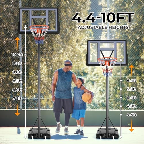 ?GIFT FOR BASKETBALL ENTHUSIASTS?Our basketball hoop features 18 in standard-size basketball rims and 10 ft high standard adjustable support poles, making it suitable for basic introductory training as well as regular-size games. The basketball stands offer a fun way to stay active and healthy, it's an ideal gift for friends and family.