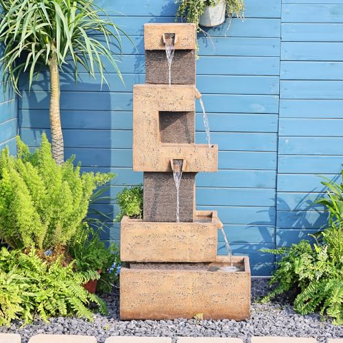 DURABLE DESIGN: Constructed From Durable Resin With A Modern Stone Look, Water Fountain Outdoor Garden Were Weatherproof, Rust-Resistant, And Resilient To Let Your Waterfall Fountain Outdoor Looks Rich In Artistic Touch.