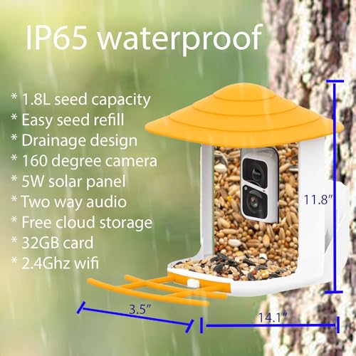 ? Capture Birds Clearly with 1080P Color Night Visio ?With 1080 HD high resolution, the bird feeder camera provides clear and vibrant images and videos, even in low-light conditions. You can observe birds up close and appreciate the intricate details of their feathers. With a stable 2.4GHz(NOT support 5GHz) Wi-Fi connection, you can enjoy uninterrupted birdwatching without worrying about signal loss.
