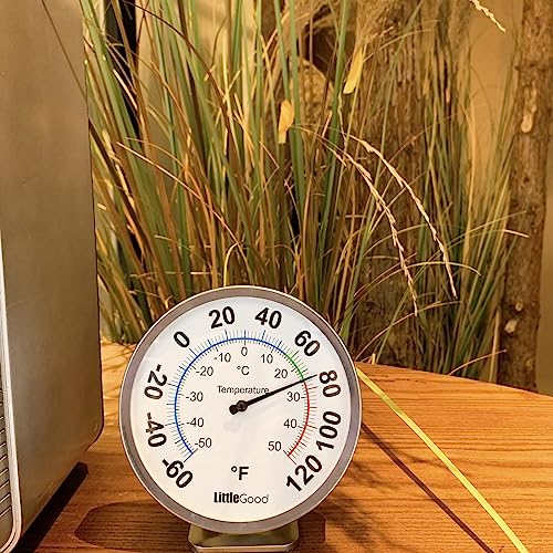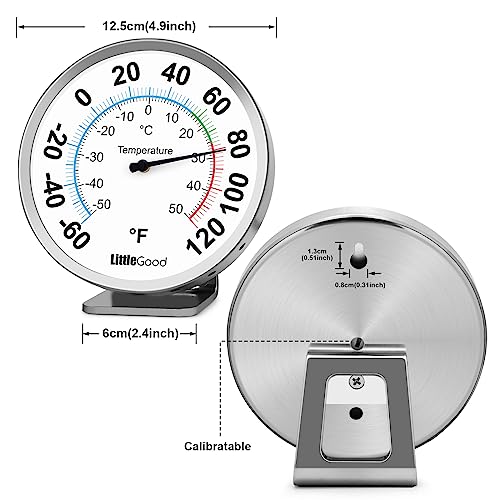 [5” ROUND DIAL THERMOMETER]- Diameter 5 inch(12.5cm) with big large number on this dial thermometer makes reading the temp from a short distance possible. You can place this thermometer both indoors and outside to glance at when needed, especially ideal for the aged eyes to read the temperature. A wonderful home thermometer for rooms, studies, bedrooms, kitchens, desktops, nurseries, workshops, garages, undercover patios