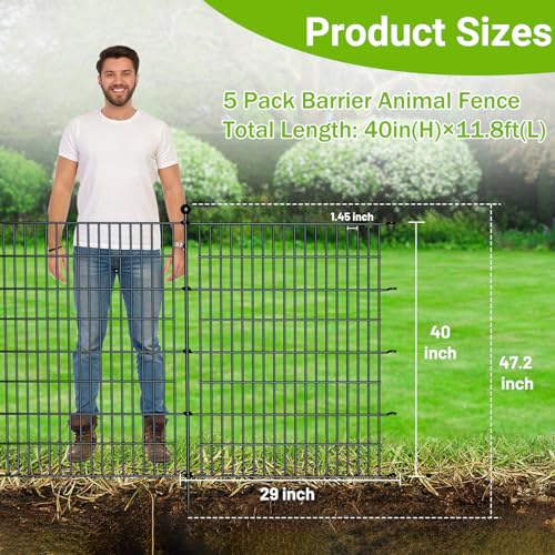 SECURE & STURDY ANIMAL BARRIER>>The metal and spear-top pickets provide a strong physical barrier to deter intruders and keep pets like dogs and rabbits contained. Built to withstand harsh weather conditions, this fence ensures your garden remains protected year-round.