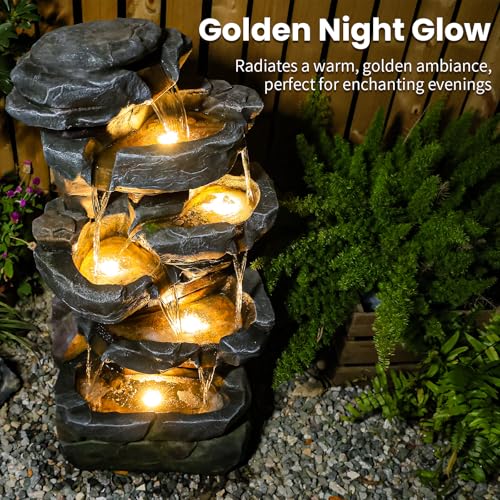 GARDEN WATERFALL FOUNTAIN: This running water fountain has built-in golden lighting to create a warm atmosphere. The waterfall fountain will turn into a magnificent indoor decoration at night.