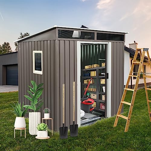 Robust Construction: This 6ft x 5ft metal storage shed features sui generis aluminum frames and galvanized steel panels for enhanced sturdiness and long-lasting durability, ensuring it withstands harsh weather conditions for years.