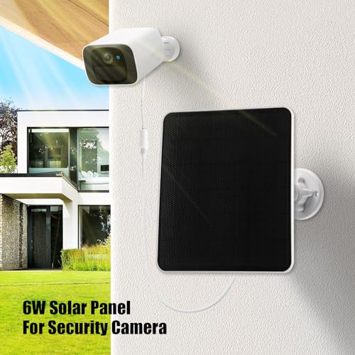 ?High-Efficiency Solar Power Description? This 5v 6w solar panel is a high-efficiency and stable monocrystalline silicon solar panels which can provide continuous solar power for your rechargeable security cameras, doorbell etc equipment that with Micro USB or USB C port.