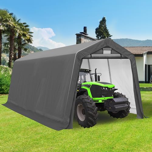 ?Heavy Duty Tough Steel Metal Frame?- This portable storage shed, is built outdoor ready with thick galvanized steel to prevent cracking, peeling and other water-related issues. Bury our motorcycle shed's extended edges and mount it to soft ground with the included stakes for a greater seal , it can withstand different weather and keep the shed/shelter safe! No more worrying about rust, corrosion, or peeling!
