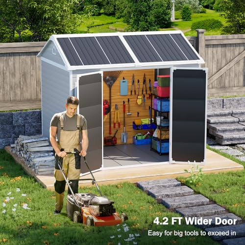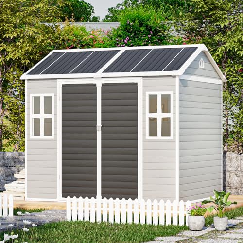 8x6 FT Resin Storage Sheds with Floor Waterproof Outdoor Shed Kit, Outside Plastic Sheds with 2 Windows for Backyard Garden Patio Lawn Tools