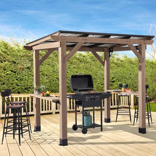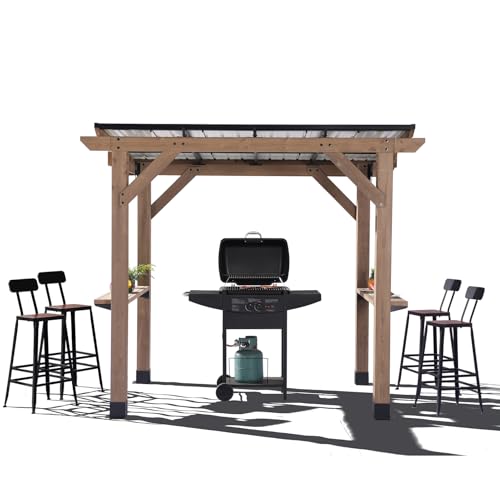 Sturdy Solid Wood Frame: The frame of the wooden BBQ gazebo is made of solid wood, sturdy and stable, with natural wood grain that blends in with the patio. The hard sloping steel roof provides better protection against all types of harsh weather