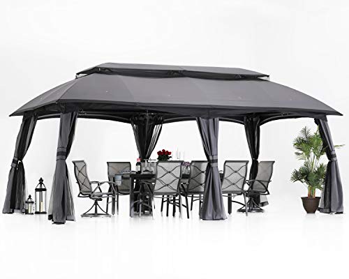 ??SOLID CONSTRUCTION & SHADOW AREA?: This gazebo’s fabulous design is features six arc-shaped steel legs, which are made of high-grade engineered steel and powder-coated for rust-resistance. The diameter of each leg is ?80mm ( 3.1'' ), stronger and thicker than most frame legs on the market. The open size of our 10’x20’ gazebo is 20' L x 10' W x 9' H, (manual measurement, only for reference!) , which can provide 200 square feet of coverage, offering plenty of room for 12 people at least.