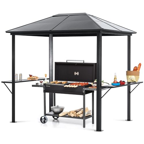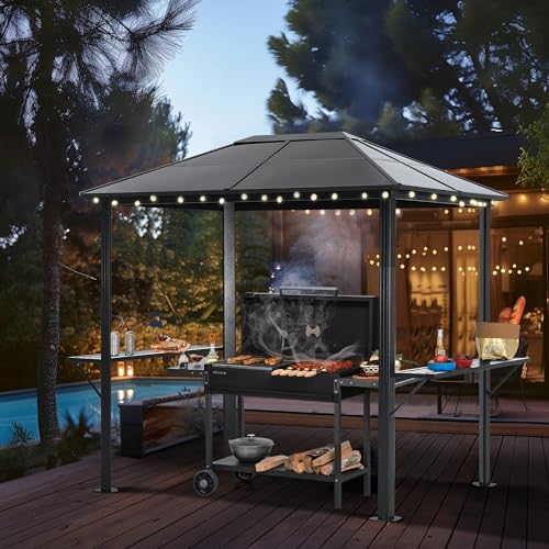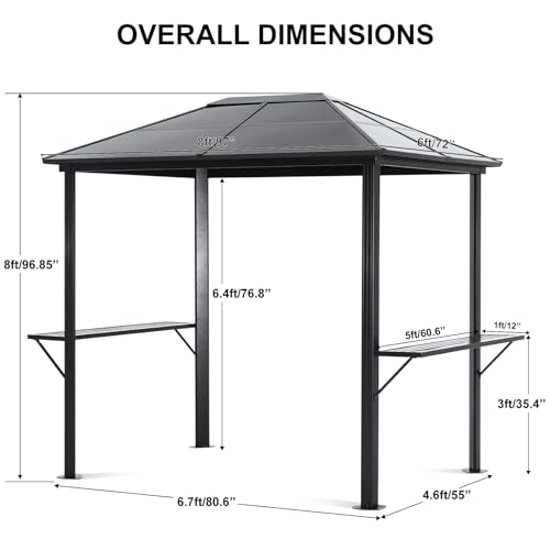 HARD TOP DESIGN: Adopt high quality polycarbonate panel material, the grill gazebo top can effectively protect against UV rays, higher weather resistance and easy to clean.