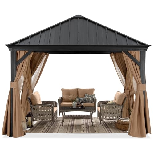 Netting & Privacy Curtain?Our hardtop gazebo comes with both easy sliding Bug Netting and Privacy Curtains.The outer layer of curtains provides you privacy while effectively blocking out UV rays, and the inner mosquito net ensures proper ventilation and prevents insects from entering.