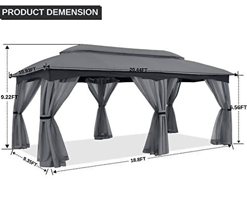 High Quality Product Material: This 10x20ft permanent gazebo made of high quality iron metal, the gazebo frame is sturdy and durable. The metal frame is coated with anti-rust coating to increase weather resistance and reduce damage from natural elements in outdoor use. The top cloth is made of high quality polyester fabric, wear-resistant and tear-resistant without fading.